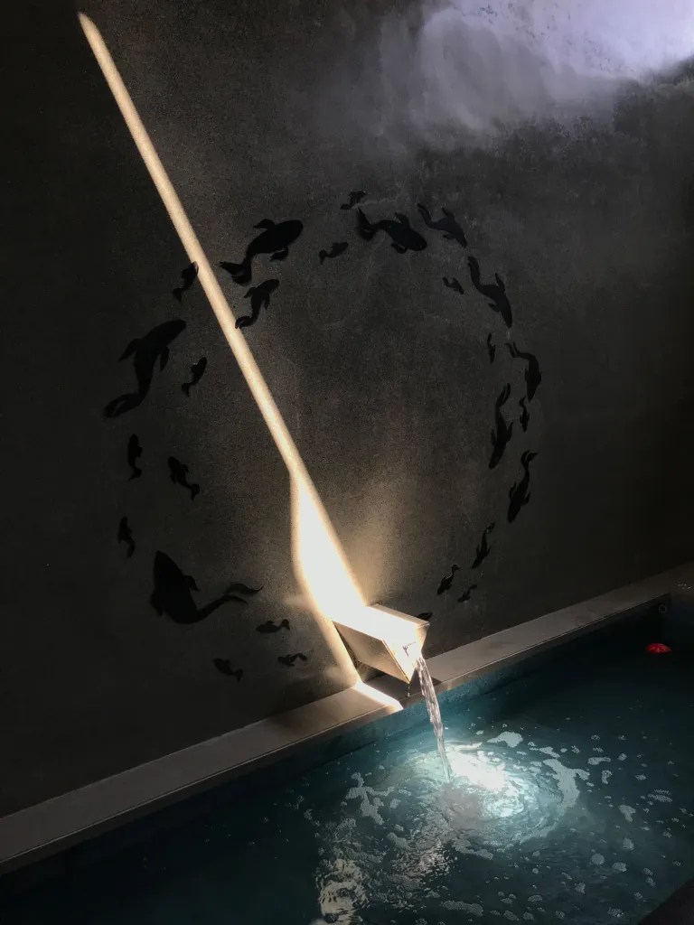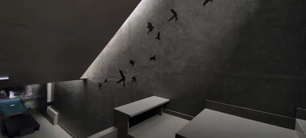 The articulate internal space takes a radically different approach. Resisting the impulse of creating a white box, the architects choose a dark, restrained palette to adjust with the limited light available within. The permeable section responds to this challenge by creating opportunities for openings in the external skin. The comfortable interior space wraps around the preferences of the family that occupies the house.
