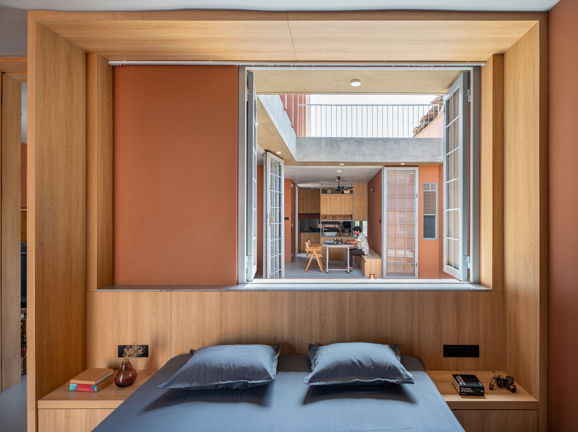 Low-scale houses carry with them a possibility of being an archetype for living in the many small towns and peri-urban areas in India, where one has access to building cultures. Designed for a priest, this 190 square meter house is designed as a series of multi-use, interconnected spatial moves that follow the activity and living patterns of the individual for whom it is designed. This very specific and sensitive response to the aspirations and comforts of an individual is then accentuated through mature employment of spatial design strategies that lean on transitions and thresholds for the architecture of the house to unfold.