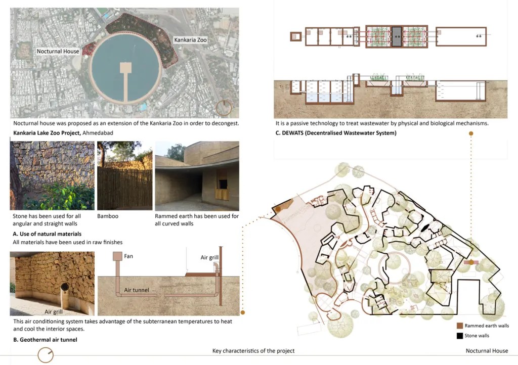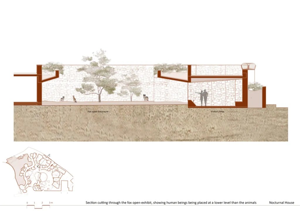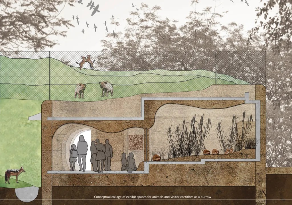 Programmed as a habitat for wildlife, the building plan is a maze – a complex labyrinth that enables visitors to engage with animals in their secure enclosures. A complex pattern of circulation carves out the solid space as the architectural section enables layering of multiple habitats tucked within the landscape and terrain of the site. Built frugally, the formal and material articulations of the building respond to the demands of the publicness and privacy of the animal enclosures. The architecture ensures comfort and proximity for the humans and the wildlife that inhabits the building without the anxieties of the typical metal cage. An interesting arrangement of solids and voids enables sunlight to reach within with a varying intensity. Civic buildings designed for the zoological gardens in India are known to be insensitive to the needs of the fauna as well as uninspiring to the human visitors. For a unique typology, the Nocturnal Home project by Arya Architects takes on the spatial challenge and is able to create an engaging space for the encounter and therefore, it is a Commendation Project for The Merit List.